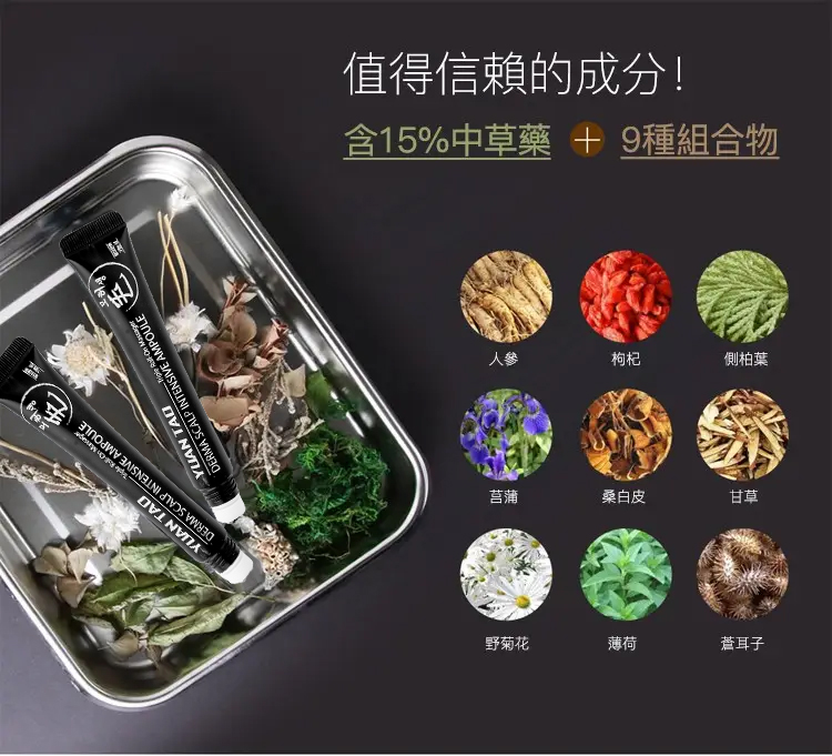 這款產品不僅添加了人參,枸杞,魚腥草,測柏葉等中草藥成份